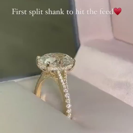 The wait is over — our best-selling design is now available in a luxurious 18k gold plating. Featuring a 3.5 carat oval-cut simulated diamond (8x12 mm) in a timeless 4-prong setting, this ring is accented with round-cut white side stones that add extra brilliance. It proves that simple can still be striking.