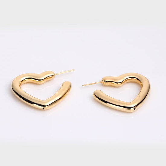 Playful, glamorous, and sophisticated — this pair of hoops will make you fall in love at first sight! Featuring a unique curved heart silhouette crafted from high-quality gold, these earrings add a romantic yet modern touch to any look.