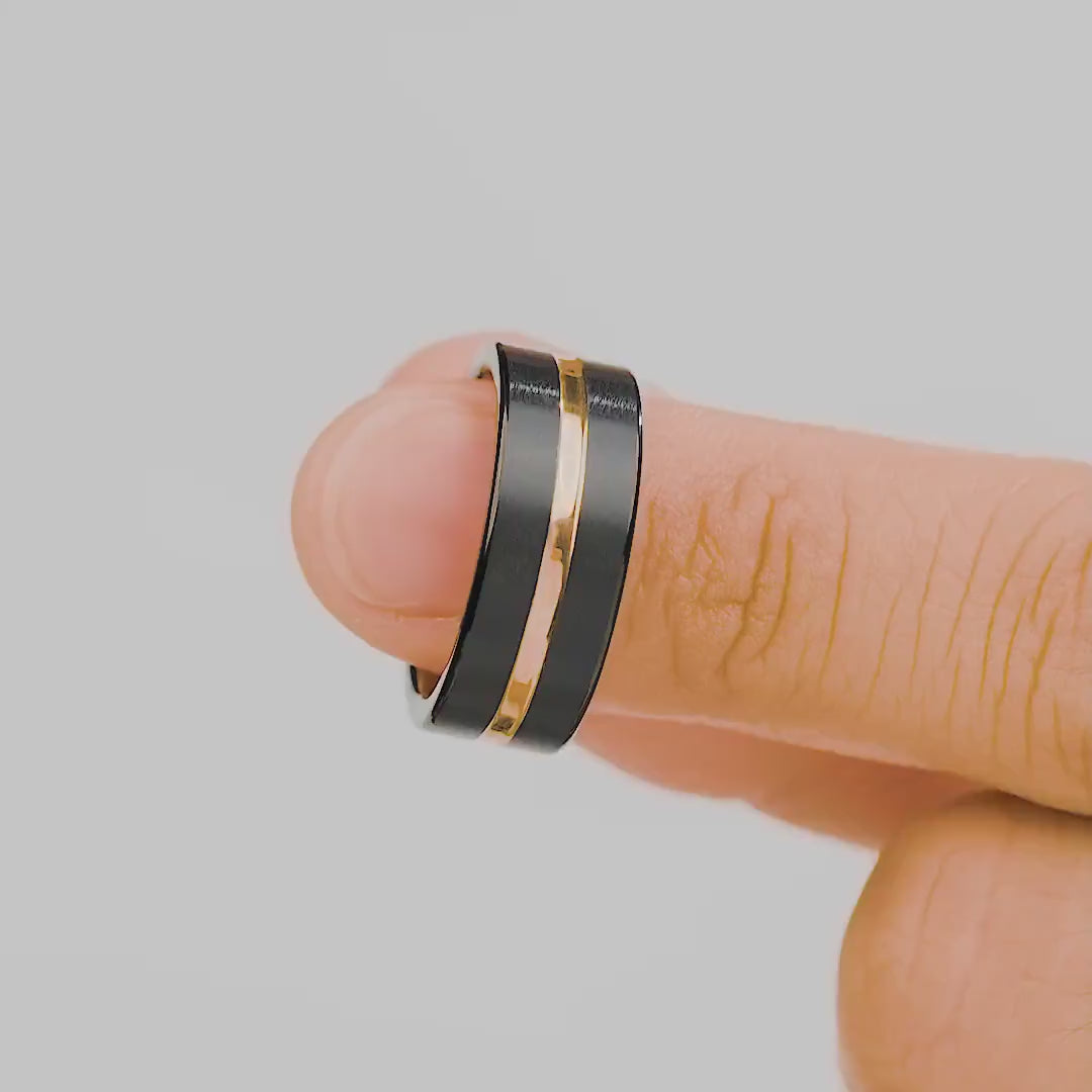 Trust us when we say this is the ultimate band and everyone wants to rock it. Designed with a tungsten carbide base, The Elite black and rose gold tungsten ring has got a solid weight and an undeniable sleekness to it. With a nice matte black finish and a rose gold inlay that adds a touch of sophistication, this ring means business. The ring’s interior is made of the same captivating rose gold, giving you a unique two-toned look. The Elite is hypoallergenic, durable and ultra scratch-resistant. Once you put on this ring, you’ll look and feel like that guy.