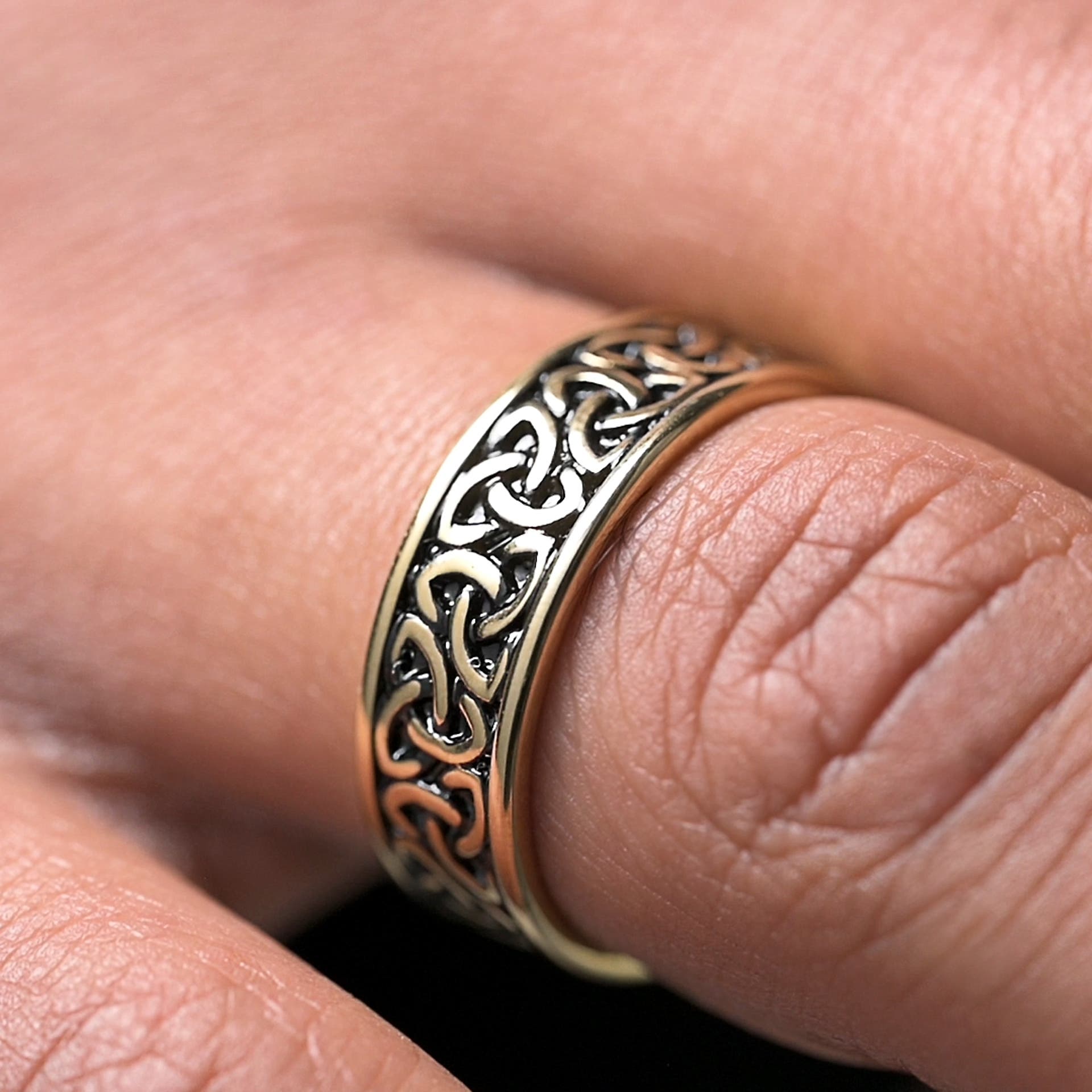 Each ring is hand-crafted to perfection. Made from high-grade 316L stainless steel with a durable PVD gold finish, this ring is polished to a mirror shine and built to last.Featuring a bold Celtic Triquetra design, it offers a meaningful twist on a classic look. Waterproof, nickel-tested, and skin-safe — perfect for everyday wear, even while swimming.A great alternative to a traditional gold wedding ring.