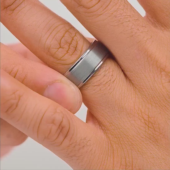 The Excalibur - Silver is a classic tungsten carbide silver wedding band, ideal for the contemporary man. This silver ring is robust, stylish, and durable, perfect for any occasion. Whether you're married, engaged, or just need a ring that can withstand the elements, this men's tungsten carbide wedding band adds a touch of class to your collection. Its sleek design and durability make it a superior choice for a wedding band.