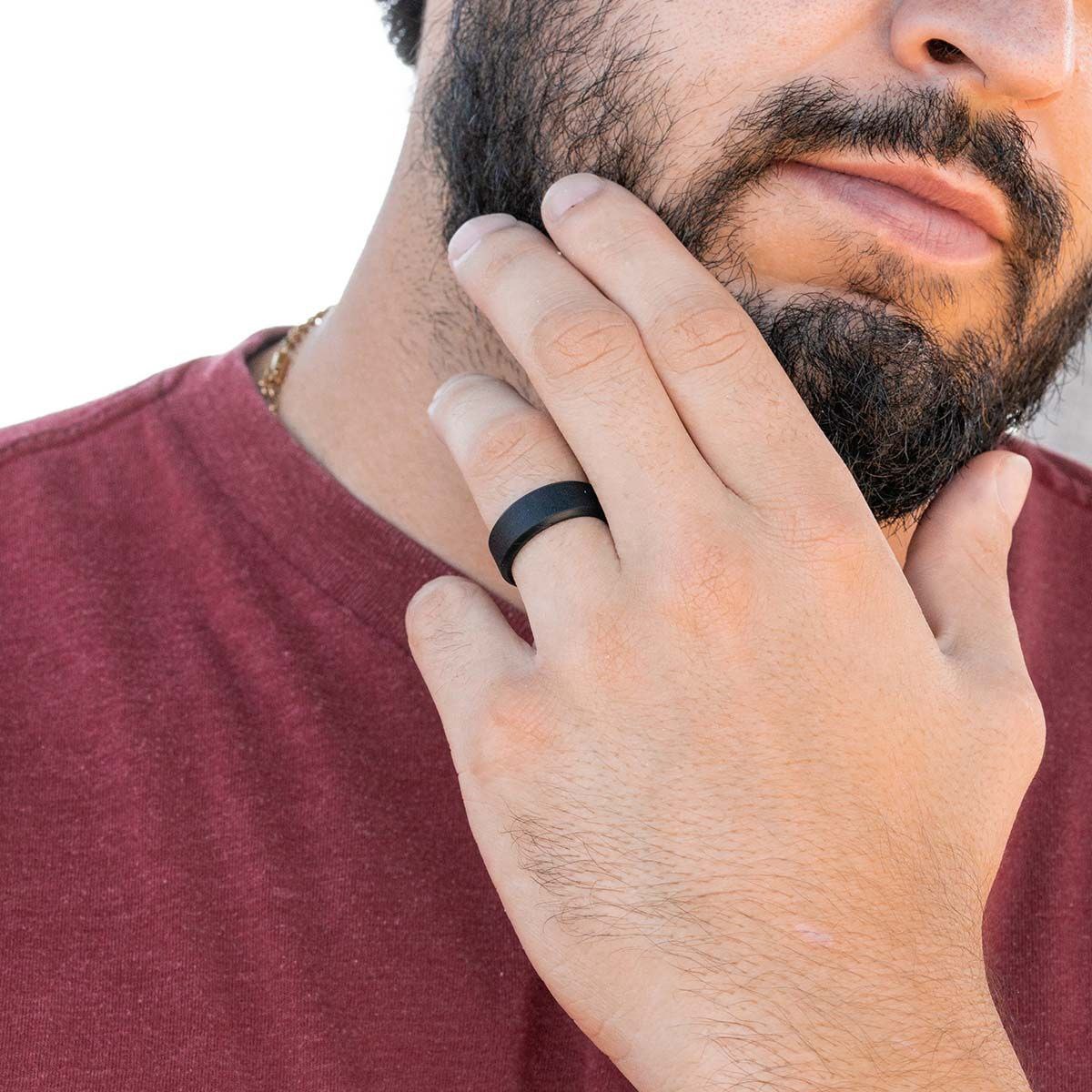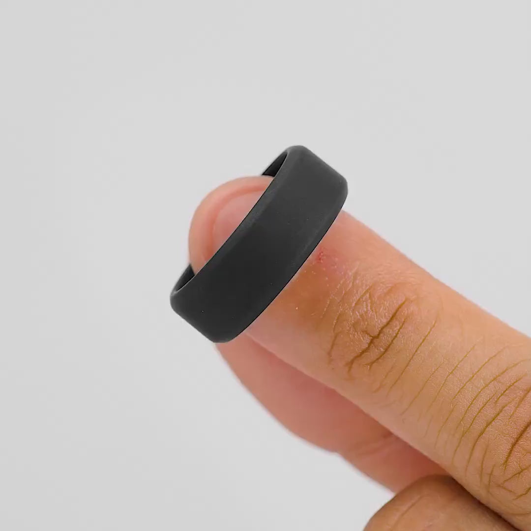 Looking for a silicone ring that doesn't really look like a silicone ring? Meet the Force Flex. Measuring at 8mm wide with slick beveled edges, this ring is the best looking silicone ring we have! This silicone wedding ring is hypoallergenic, flexible and super comfortable! If you work with your hands, can’t wear a metal wedding ring at work, do physically demanding activities or like to switch things up, these rings are for you.