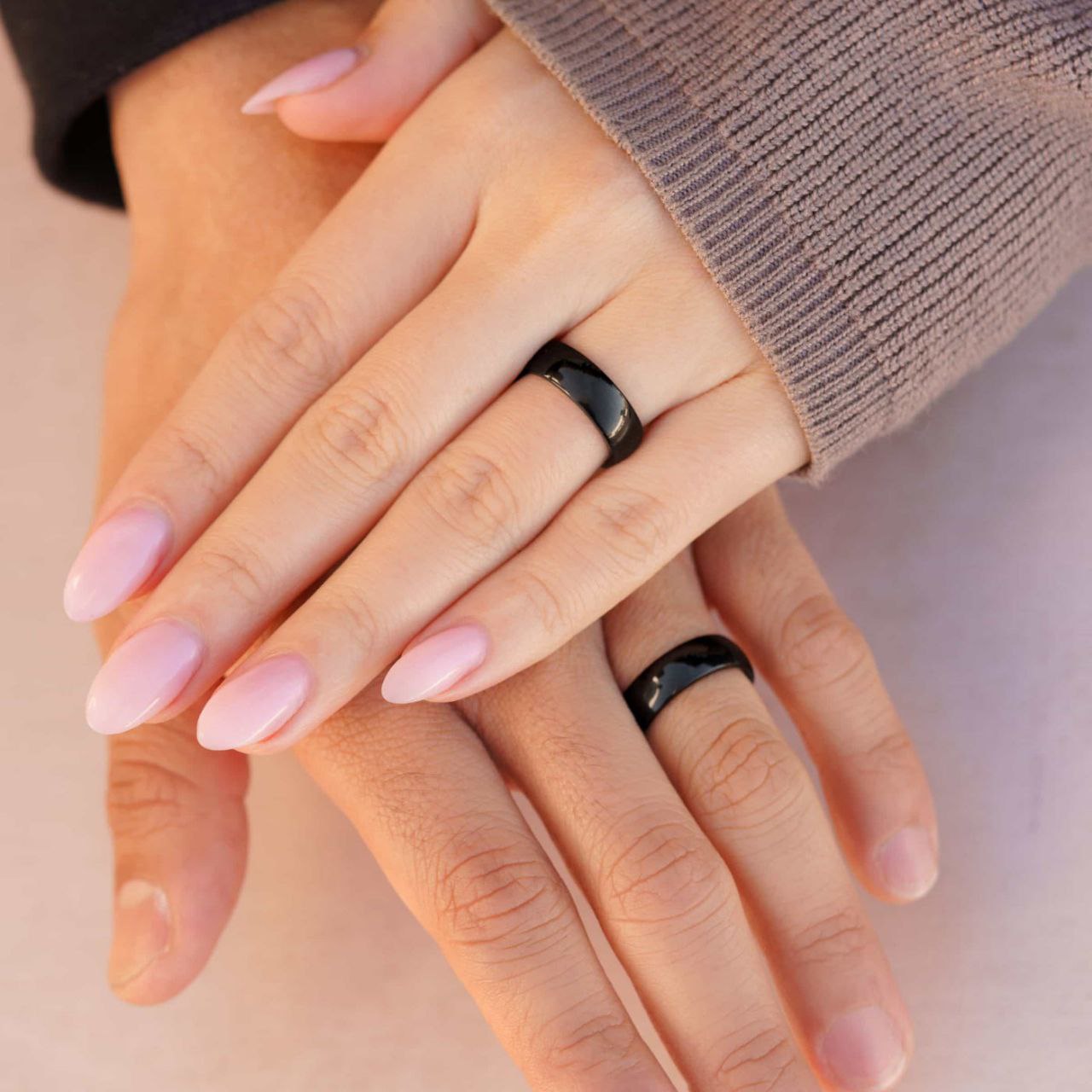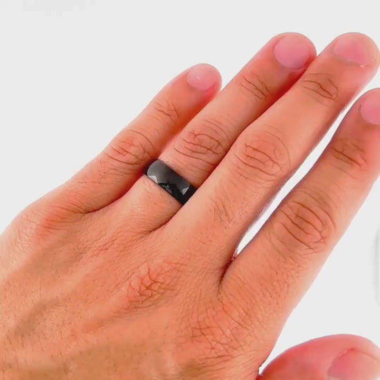 Meet the wedding ring that challenges all conventions. The Horizon is a unisex wedding band made out of stainless steel coated with a black reflective finish that makes this ring anything but ordinary. Designed for those who prefer an edge to their style, its gender neutral design is the perfect blend of sophistication and boldness. Lightweight yet durable, this piece proves that simplicity can be striking. Whether worn as a wedding band or a daily signature piece, this ring lets you express your individuality with confidence.