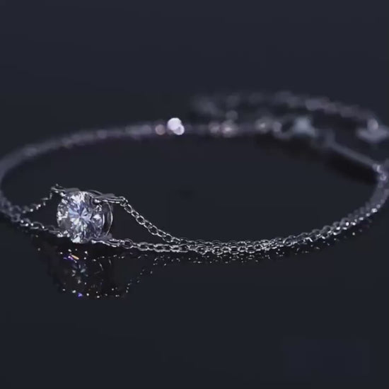 This elegant bracelet is handcrafted from premium 925 sterling silver and plated with luxurious 18K white gold. A brilliant round-cut moissanite at its center adds a radiant sparkle, making it a timeless piece for any occasion. Hypoallergenic and nickel-free, it's perfect for those with sensitive skin.