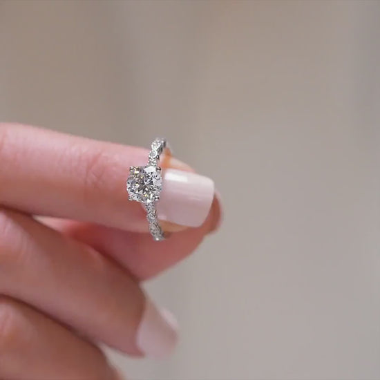 A ring of pure romance. The Sofia features a grand 1.5 carat round cut center stone with a vintage half eternity design adorned along its 2mm sides. The ring is made of the highest quality 925 sterling silver and plated in rhodium to give it that extra sparkle and luster. Fair warning: you’ll fall in love with this ring – hard!