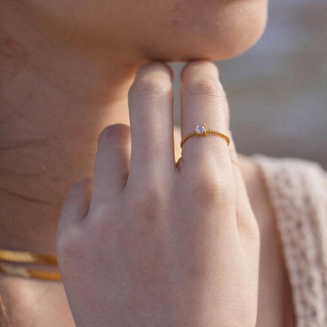 This refined ring with its twisted band and sparkling princess-cut Simulated Diamond is the definition of timeless beauty. Light, airy, yet eye-catching — it will become your favorite accent for everyday wear and special occasions alike. Perfect as a gift for a birthday, anniversary, celebration, or even as an elegant engagement or wedding ring. Its versatile design makes it a beautiful choice — for yourself or someone you love.