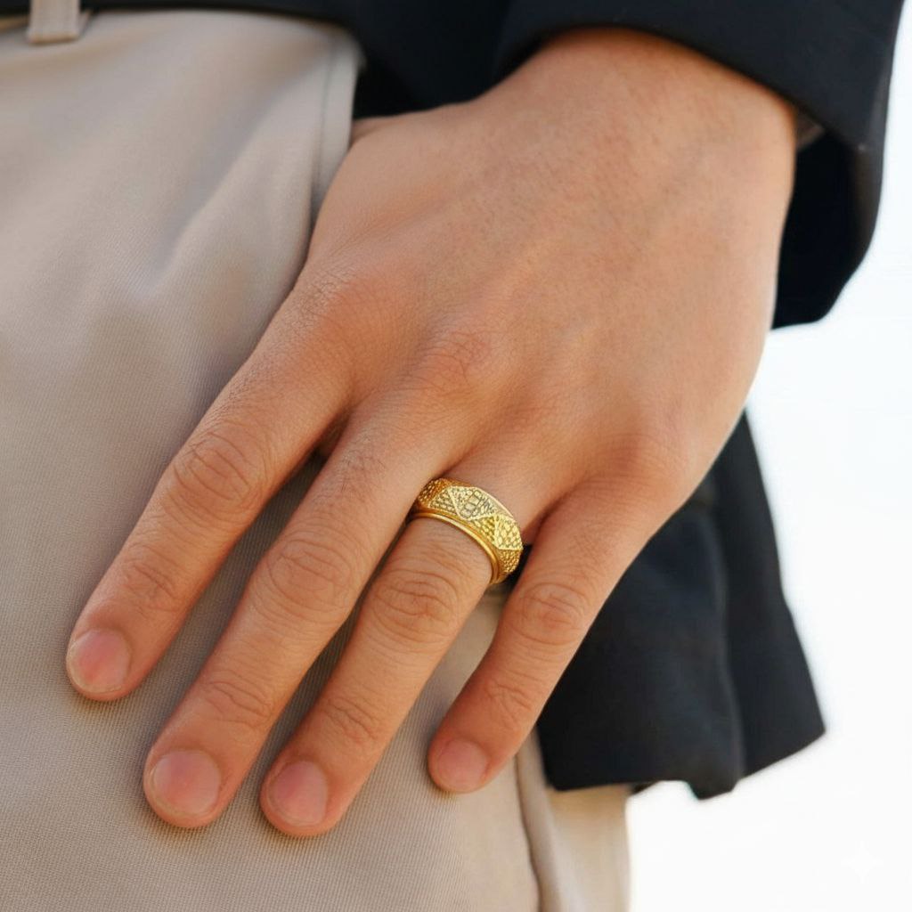Our rings are crafted from durable tungsten carbide, known for its exceptional strength and longevity. Each ring is finished with a luxurious layer of gold plating — available in Yellow Gold — giving it an elegant and modern touch. The rhodium coating enhances brilliance and provides lasting protection, making this ring perfect for everyday wear. Ideal for those who value both style and durability.