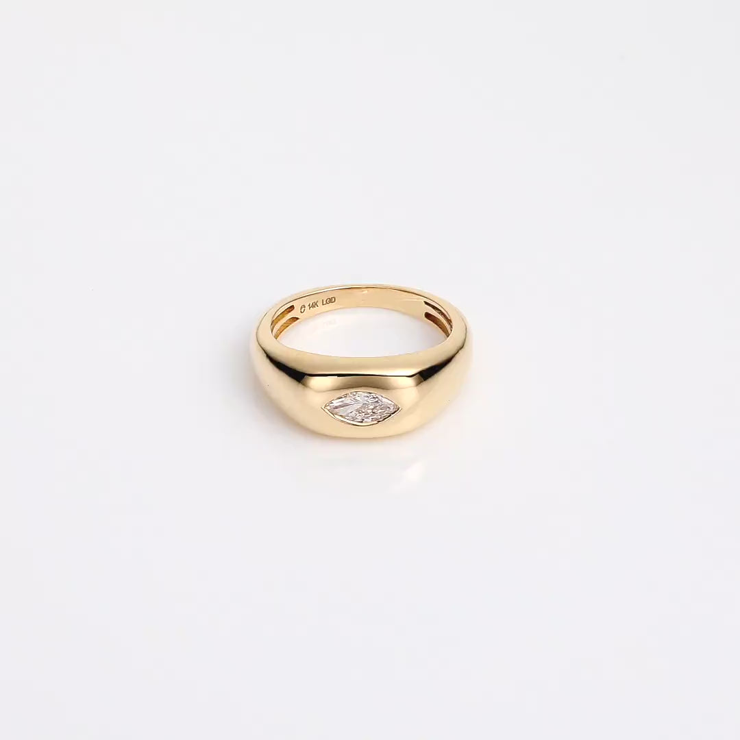 Our rings are all handmade with precision and crafted to highlight brilliance and durability. This bold ring features a lab grown marquise-cut diamond set in substantial genuine gold, creating a perfect balance of statement style and timeless elegance. Its chunky design makes it ideal for stacking or wearing solo.
