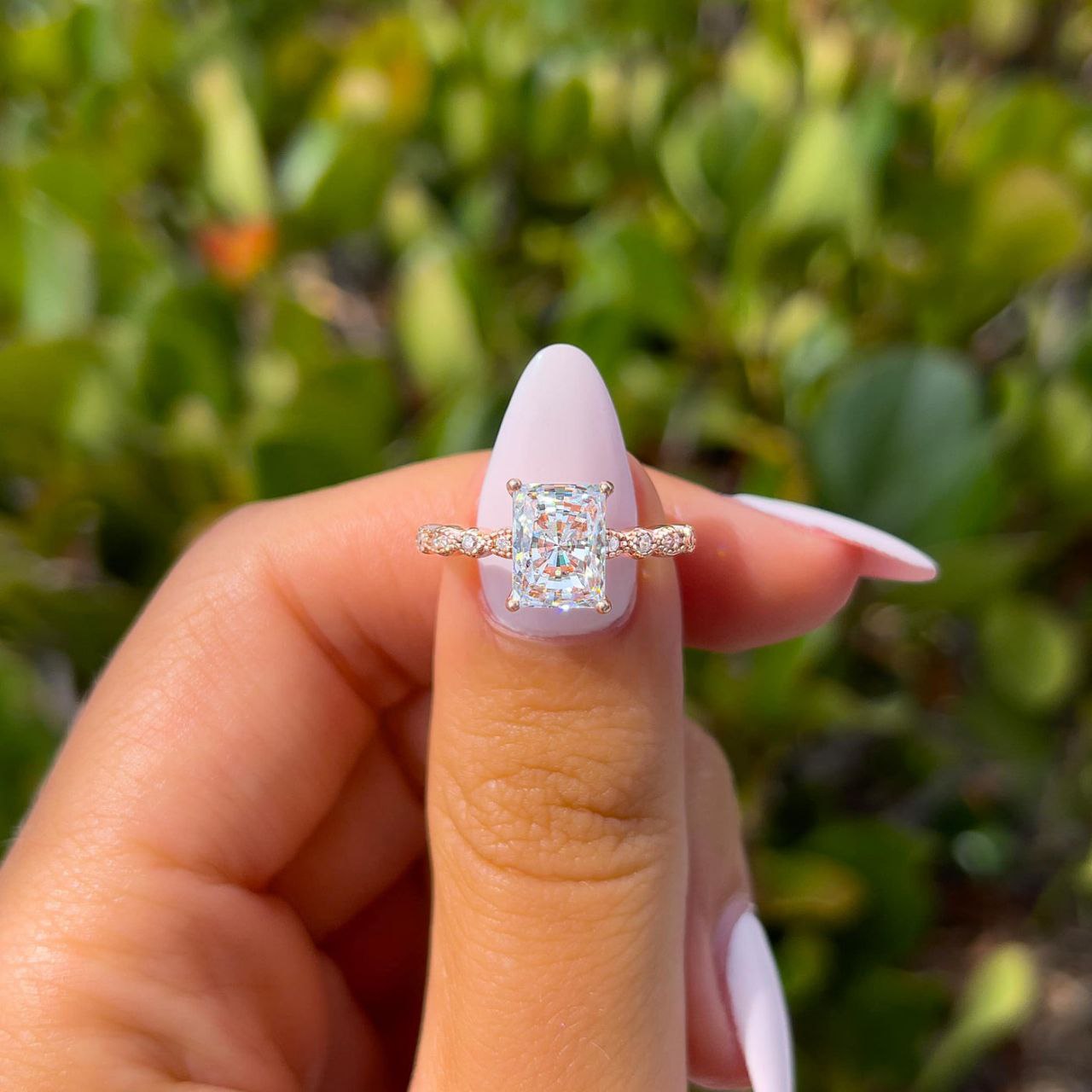 A Gorgeous Radiant Cut Rose Gold Engagement Ring