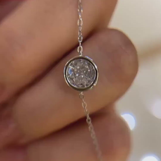 This bracelet, crafted from 925 sterling silver with luxurious 18K white gold plating, is adorned with dazzling simulated diamonds. It adds refinement and elegance to any look, making it an essential piece in your jewelry collection.