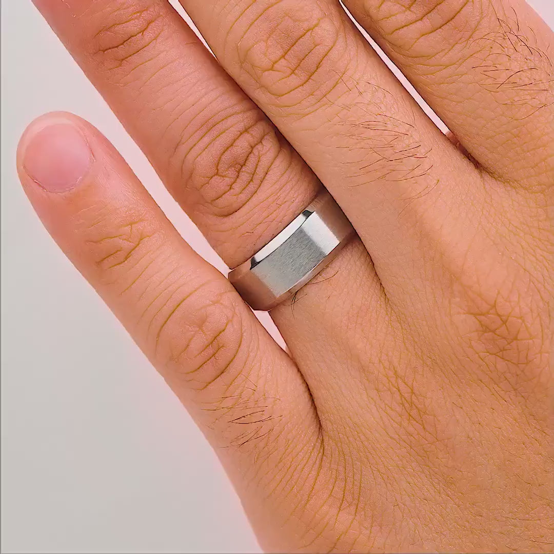 The Titan Ring - Silver is your essential men's titanium wedding band, crafted with precision for a bold lifestyle. This silver ring is lightweight yet highly durable, perfect for any adventure. Ideal for those who are married, engaged, or seeking a top-notch men's silver titanium wedding band.