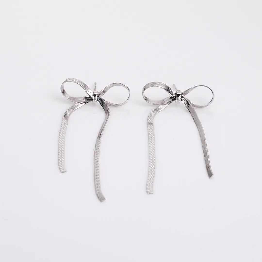 Chic, sophisticated, and versatile — this pair of earrings will instantly elevate your look! Featuring a sleek herringbone bow design, crafted from high-quality vermeil silver, they bring a perfect mix of elegance and modern charm.