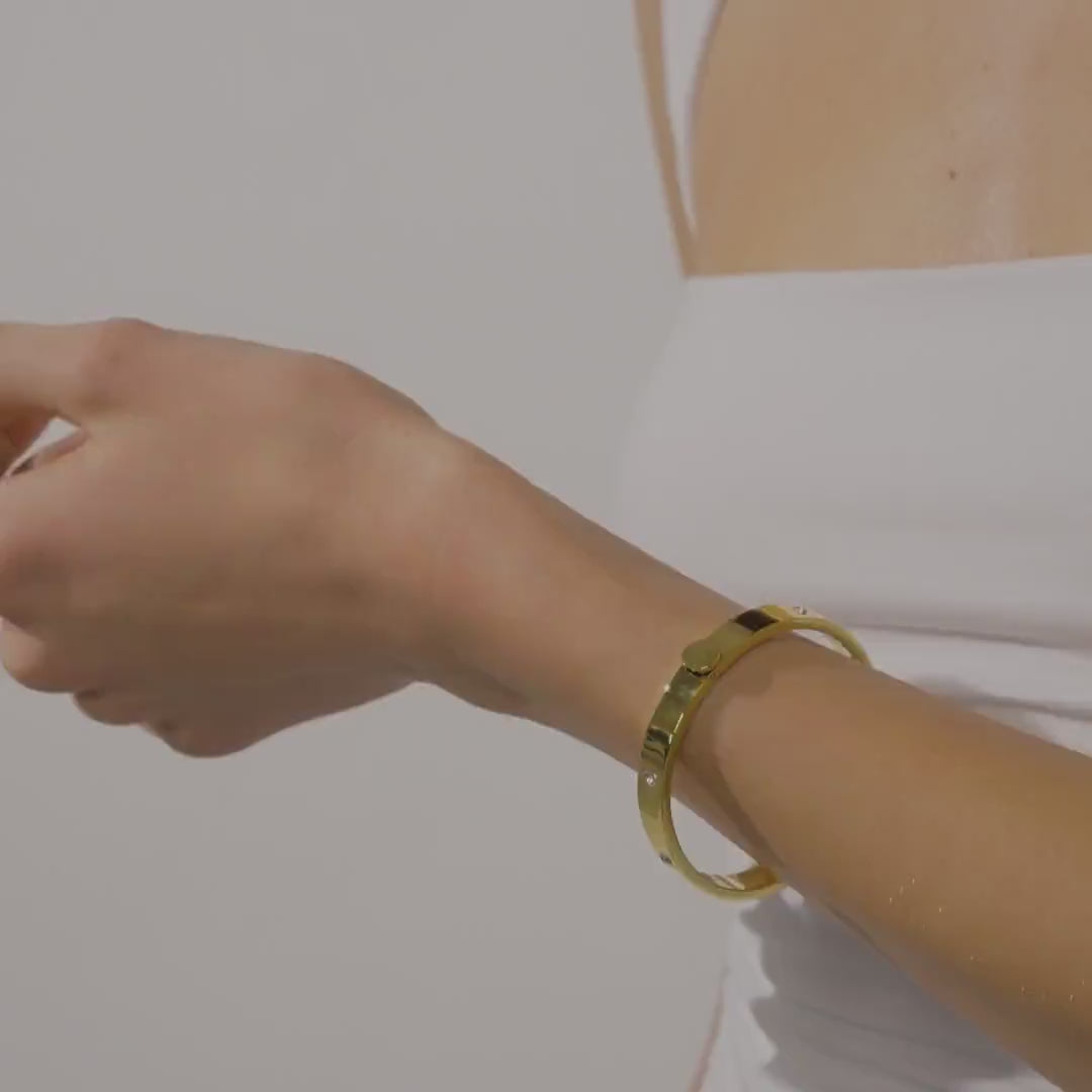 Celebrate love, commitment, and connection with this classic gold bracelet. Sleek, polished, and versatile — wear it solo for a bold statement or stack it with your other favorites to create a look that’s uniquely yours.